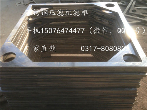 304不锈钢压滤机滤板有哪些尺寸,250mm、320mm、450mm、630mm、800mm、1000mm、1250mm、1500mm、1600mm、2000mm等系列,其它尺寸可定制。按型号可以分成板框式滤板,厢式滤板。按出液方式可分为暗流出液,明流出液。泊头市晨鑫机械设备制造有限公司。